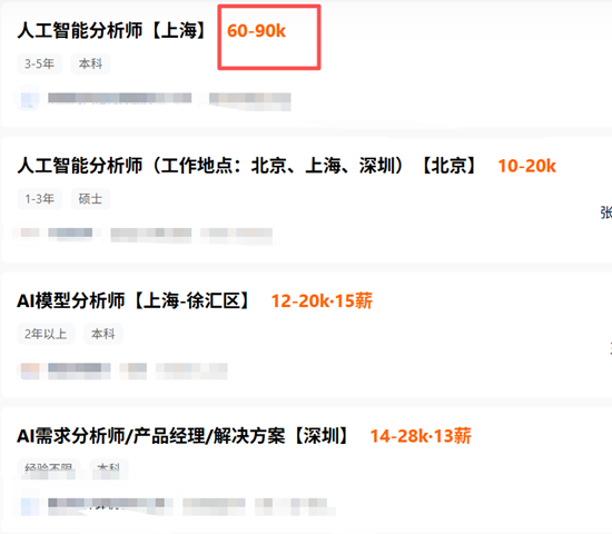 据猎聘在招数据显示,人工智能分析师年薪可达108w,是数据相关岗位中薪资较高的类别,也凸显了其技术门槛和岗位价值。